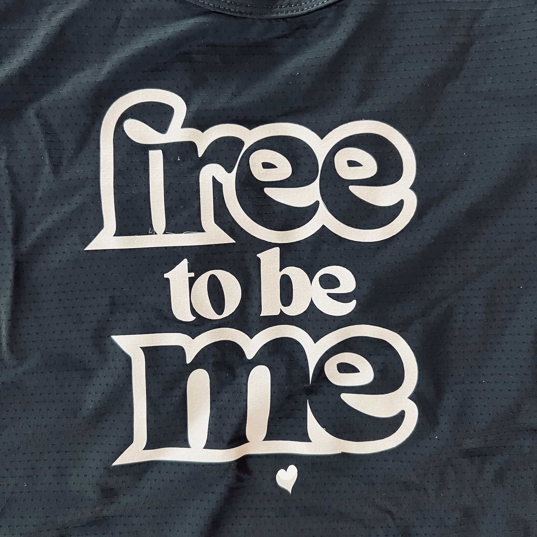 Freedom looks good on you. The Free to Be Tank combines a racerback silhouette with subtle mesh detailing for a hint of edge and breathability. On the front, 'Free to Be Me' -REB3L— a reminder to move, live, and express yourself exactly as you are.