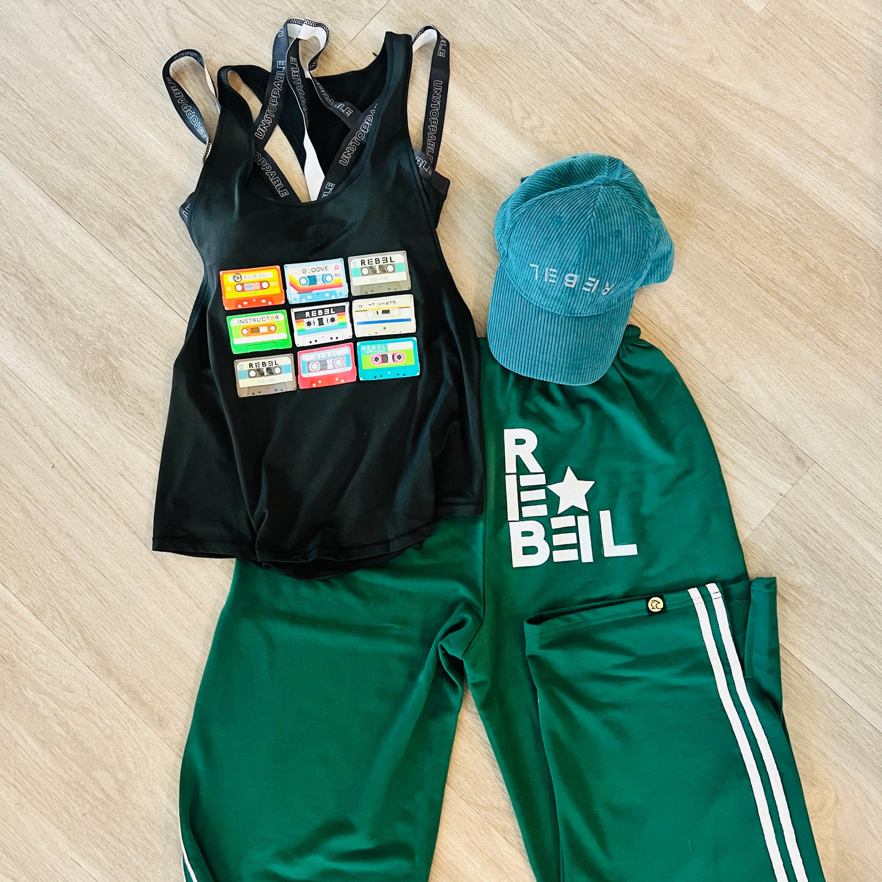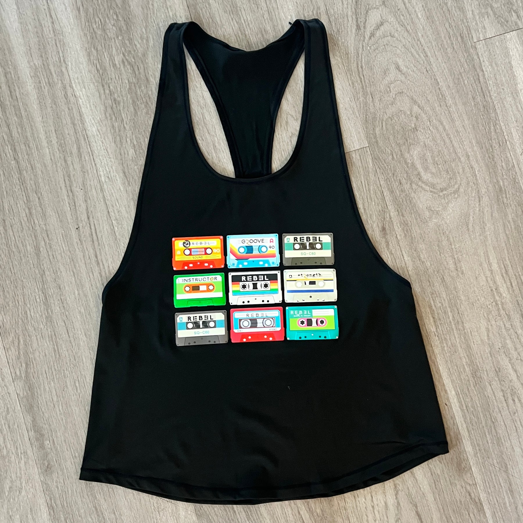 A nostalgic nod to your inner rebel. The Tape Deck Tank is a relaxed racerback with deep armholes, designed to show off your favorite REB3L bras. The front features pop-art collage of nine vibrant cassette tapes stamped with iconic REB3L logos.