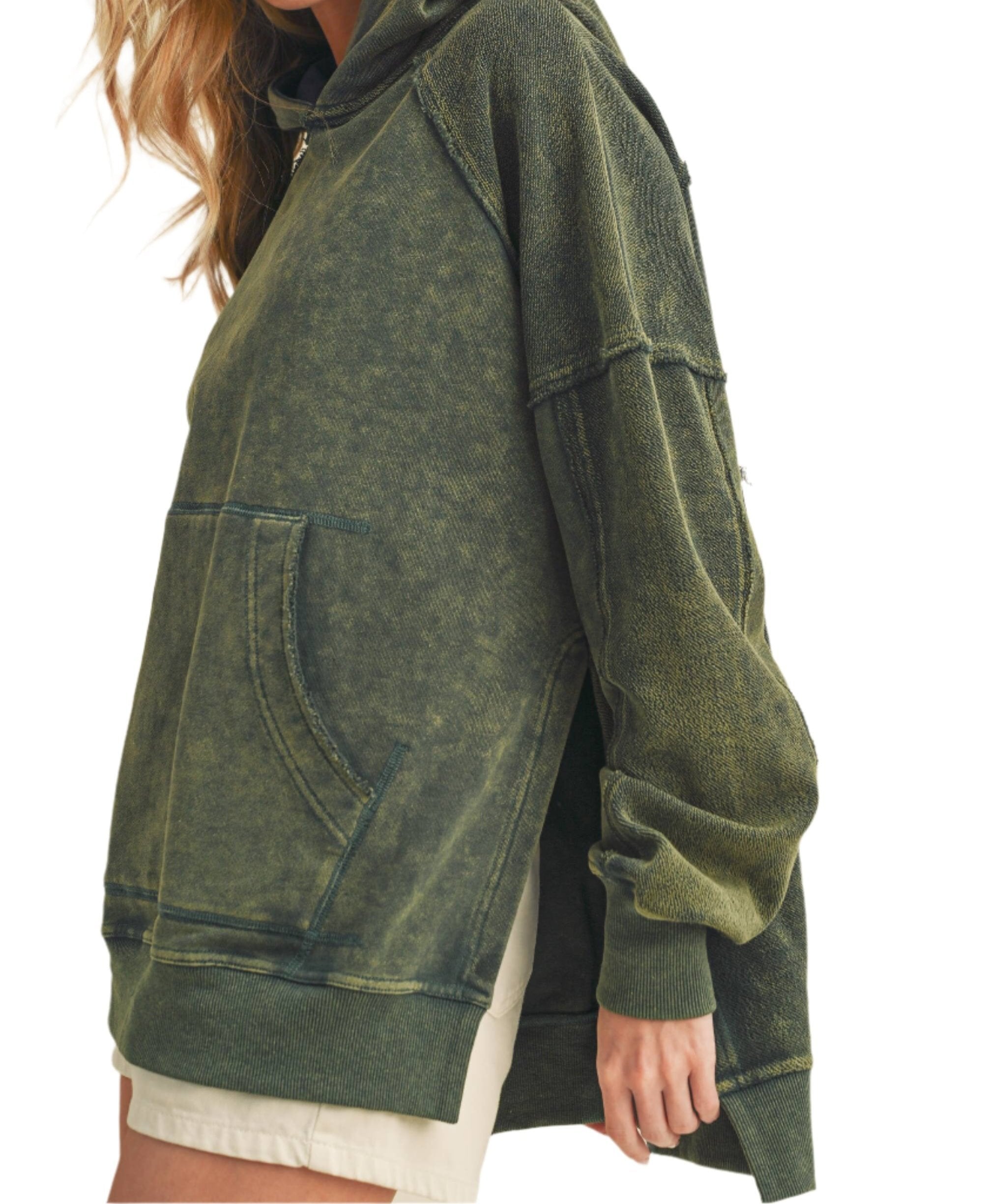 Relaxed and cozy, this hoodie features a washed look for a lived-in feel, complete with a kangaroo pockets, side slits for laid-back comfort.